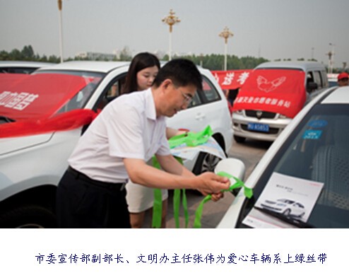 6月5日上午,以“做文明人,為莘莘學(xué)子播撒愛心;辦文明事,讓鶴城大地綻放異彩”為主題的鶴壁市2014“愛心送考”志愿服務(wù)行動啟動儀式在市文化藝術(shù)中心廣場舉行。這是該市連續(xù)第8年組織“愛心送考”活動,愛心駕駛員志愿者將在6月7日、8日為持有準(zhǔn)考證的高考學(xué)生無償提供送考服務(wù)。啟動儀式上,由出租車、公交車和私家車等組成的六百多輛愛心車張貼上了愛心送考標(biāo)識,系上了象征對學(xué)子美好祝愿的綠絲帶。愛心車駕駛員代表宣讀倡議書:“用力所能及的關(guān)心和幫助溫暖考生心靈,傳遞愛的火種,做‘愛心送考’使者,構(gòu)建和諧鶴壁”。最后,市委宣傳部副部長、文明辦主任李懷新宣布“愛心送考”活動正式啟動。愛心車輛徐徐從活動現(xiàn)場開出。